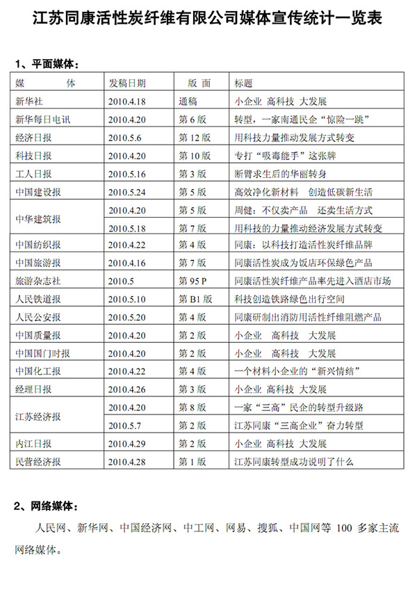 赴同康公司采訪媒體統(tǒng)計一覽表