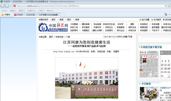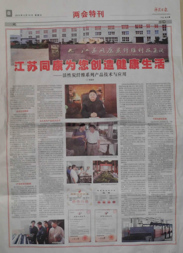 3月10日,中國科技日報記者到同康公司采訪,并在科技日報的兩會特刊發表。